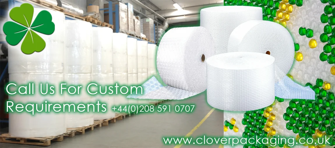 Clover Packaging is proudly able to supply bubble wrap rolls of customised dimensions, manufactured for you right here in the UK.